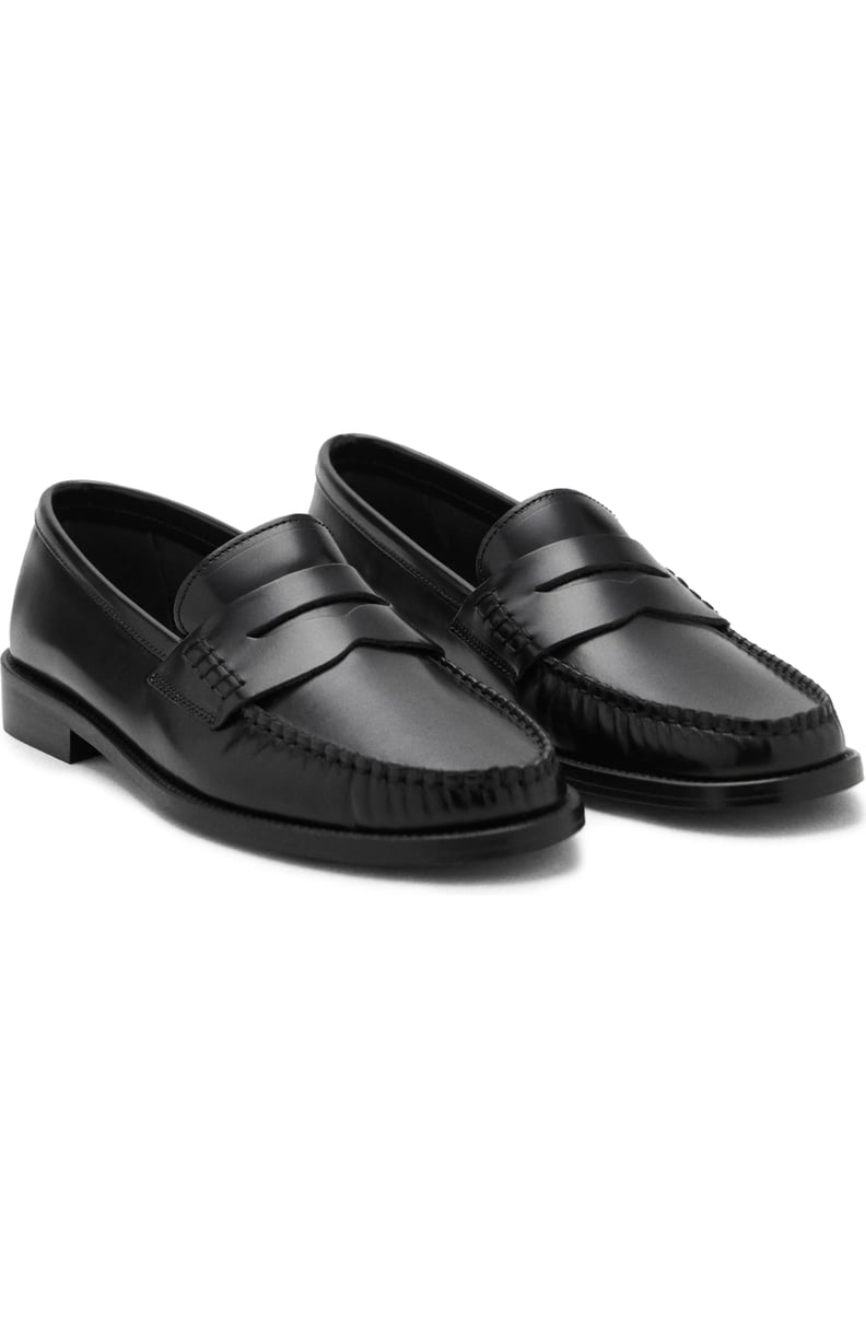 A classic pair of penny loafers will most definitely earn their keep in your closet. This pair has a moc toe, elegant banding, and a simple sole. Wear them with cute socks, your favorite pair of pants, and a sweater for an iconic cold-weather look.