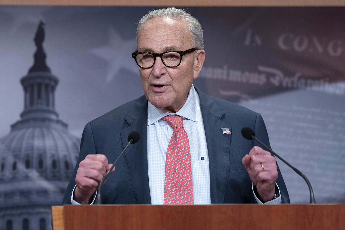 Senate Minority Leader Chuck Schumer, a Democrat from New York, speaks during a news conference on Capitol Hill, Sept. 19, 2025.