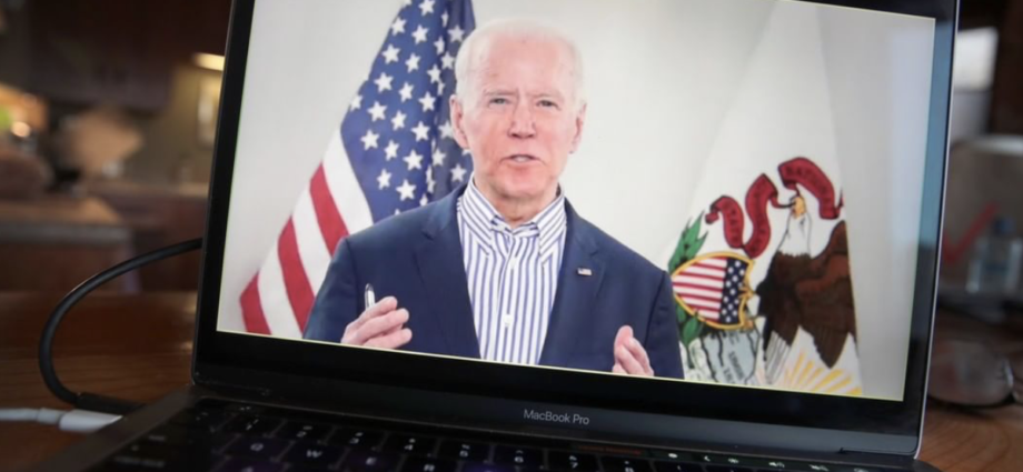 But there was no soaring speech to acknowledge the moment. He never took the stage amid a sea of Biden signs or before an adoring crowd on national television. Biden was instead stuck in a makeshift studio in his Delaware home, webcasting his remarks with a low-quality personal computer camera against a straight-out-of-YouTube black backdrop and two American flags.