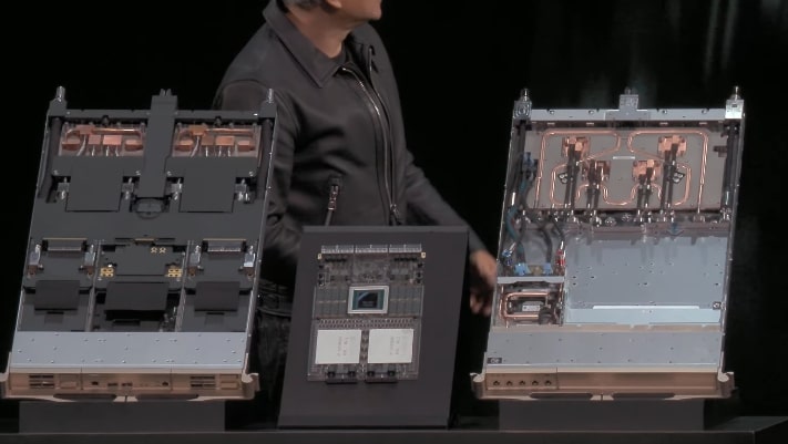Grace Blackwell NVL72: Rack-scale “thinking machine” (72 GPUs as one via NVLink; 130 TB/s bandwidth).